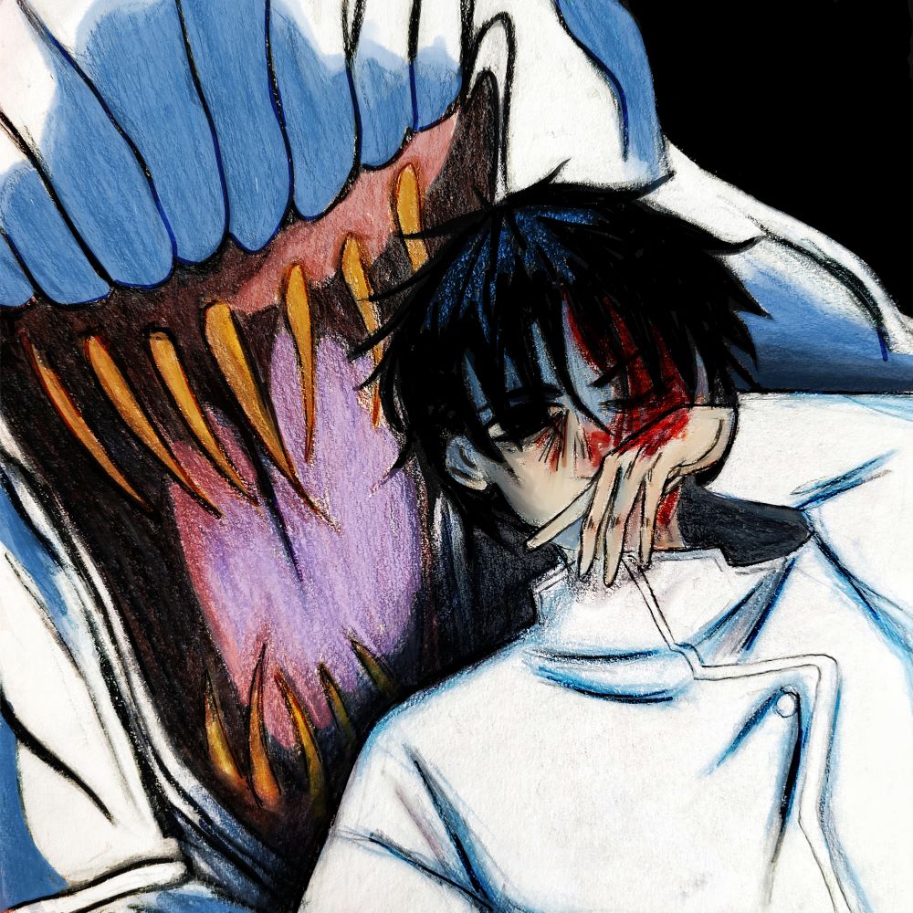 A 3D Clay keychain that comes in both a clean and bloodies version