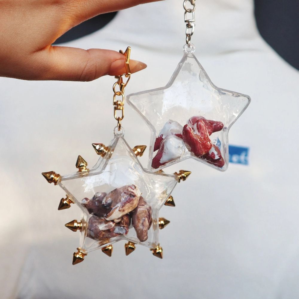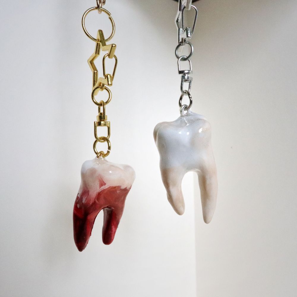 A 3D Clay keychain that comes in white, bloody, and rotten versions
