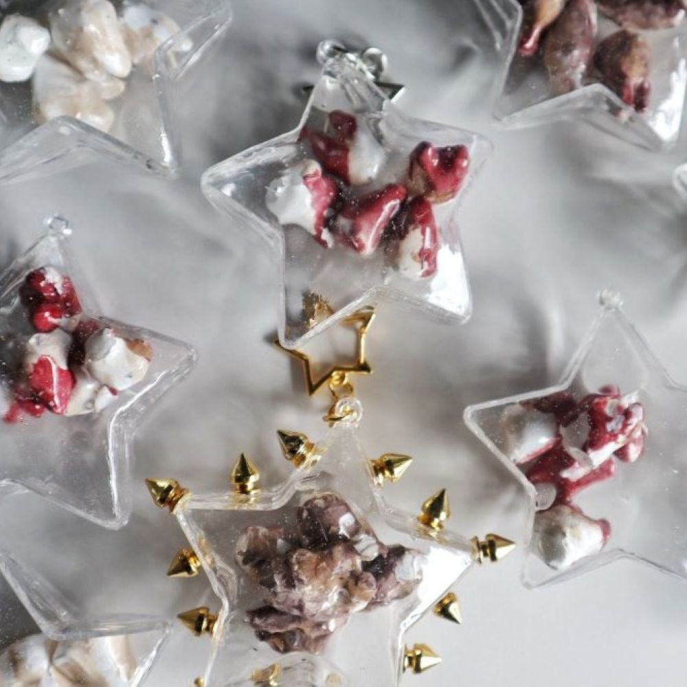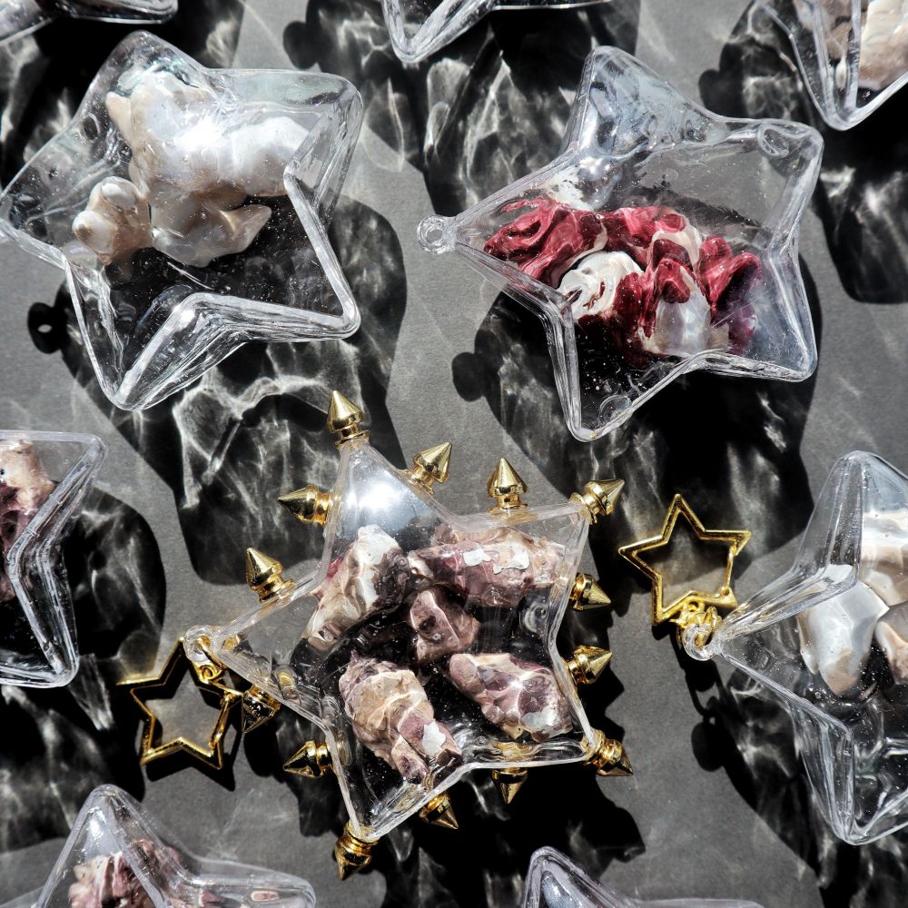 Hand made and painted teeth sealed in resin in a cute 3D star shaker